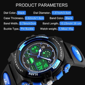 Multifuncional: design de janela de calendário, display de hora dupla, alarme, 50 m à prova d'água, display de luz de fundo LED, à prova de choque, cronômetro.