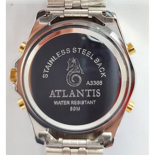 Relogio Atlantis A3366 Ponteiro e Digital Dourado com Prata Resistente a Água