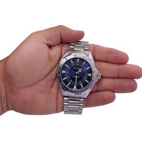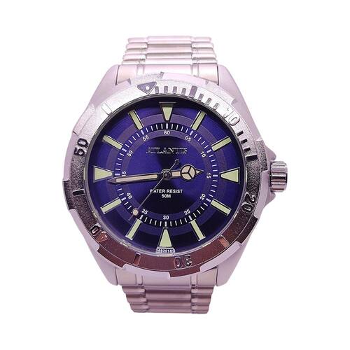 Relógio Atlantis autêntico Grande Prateado Resistente a Água - Cor do Mostrador: Azul