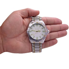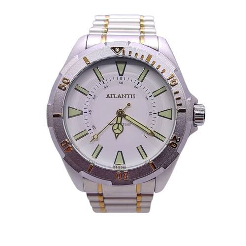 ESPECIFICAÇÕES: Relógio Atlantis A3462 Prata com detalhes Dourado Analógico Resistente a ÁguaFuncionamento: Bateria Tamanho caixa: 53mm Mostrador: Analógico Pulseira: Aço Cor Caixa: Prata Resistente a Água: 50m Nossa loja física está a mais de 35 anos no mercado oferecendo aos seus clientes o que há de melhor em vendas e serviços de conserto, de relógios e jóias em ouro e Prata.Relojoaria Yoshikawa dedicando todo tempo a você.Nossos produtos são todos tratados com o máximo cuidado, carinho, amor e profissionalismo. Enviamos seu produto em uma embalagem reforçada.