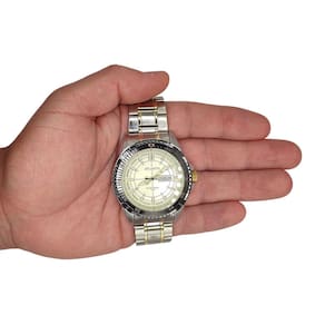 ESPECIFICAÇÕES DO RELÓGIO DE PULSO ATLANTIS SOCIAL MISTO MASCULINO RESISTENTE À ÁGUA: MARCA: Atlantis Sports MODELO: G3392/Atlantis autêntico/Masculino/Analógico/Social/Prático/Moderno/Misto prata e dourado GÊNERO: Masculino COR DA CAIXA: Prateado com detalhe Dourado e Preto COR DO RELÓGIO: Misto COR DO MOSTRADOR: Preto ou Dourado ou Prata MATERIAL DA PULSEIRA: Metal MATERIAL DA CAIXA: Metal MODELO DO FECHO: Fivela Dobrável TIPO DE MOVIMENTO: Bateria TIPO DE VIDRO: Vidro Mineral TAMANHO DA CAIXA INCLUÍDO A COROA: 46mm ESPESSURA: 1cm É RESISTENTE À ÁGUA? Sim É ADEQUADO PARA MERGULHO? Não PROFUNDIDADE DE RESISTÊNCIA À ÁGUA: 50 Metros