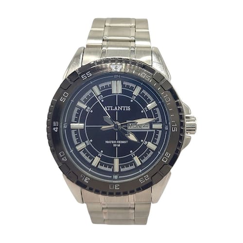 ESPECIFICAÇÕES DO RELÓGIO DE PULSO ATLANTIS SOCIAL PRATEADO MASCULINO RESISTENTE À ÁGUA: MARCA: Atlantis Sports MODELO: G3392/Atlantis autêntico/Masculino/Analógico/Social/Prático/Moderno/ GÊNERO: Masculino COR DA CAIXA: Prateado com detalhe Preto COR DO RELÓGIO: Prata COR DO MOSTRADOR: Preto ou Prata MATERIAL DA PULSEIRA: Metal MATERIAL DA CAIXA: Metal MODELO DO FECHO: Fivela Dobrável TIPO DE MOVIMENTO: Bateria TIPO DE VIDRO: Vidro Mineral TAMANHO DA CAIXA INCLUÍDO A COROA: 46mm ESPESSURA: 1cm É RESISTENTE À ÁGUA? Sim É ADEQUADO PARA MERGULHO? Não PROFUNDIDADE DE RESISTÊNCIA À ÁGUA: 50 Metros
