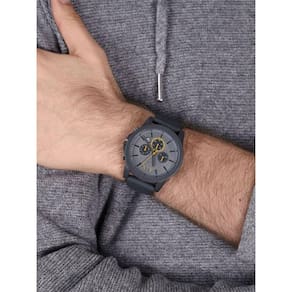 Características Formato do Relógio: Redondo Composição do Vidro: Cristal mineral Material da Caixa: Resina Cor da Caixa: Cinza Cor do mostrador: Cinza, Laranja Material da Pulseira: Borracha Cor da Pulseira: Cinza Mecanismo: Analógico Multifunção