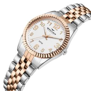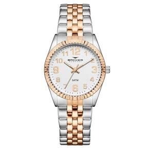 Relógio Backer Feminino Ref: 10308134f Br Clássico Bicolor DESCRIÇÃO DO PRODUTO: Caixa de Metal Pulseira de Aço Vidro de Cristal Mineral Fundo Resistente à Água 5 Atm Diâmetro / Largura da Caixa: 32.00 MM Funções: Analógico Design Alemão Alimentação do Maquinário: Bateria Mostrador prateado com todos os números Maquina Japonesa Prateado com Rosé de 1 ano Marca: Não Informado