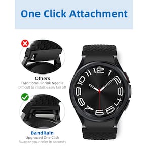 - Acessório atualizado com um clique: torna as coisas ainda mais fáceis! Basta manter pressionado o botão de liberação na pulseira trançada do relógio Samsung, removê-lo e trocá-lo por outro. Através de nossa melhoria contínua, a nova geração de conectores de um clique é mais durável e mais resistente do que a geração anterior.