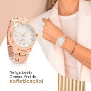 Relógio Feminino Orizom - Modelo Maria - Tipo: Analógico - Material: Aço inoxidável com banho em rosé, proporcionando um brilho luxuoso e duradouro. - Cor do Maquinário: Rosé banhado, com acabamento impecável. - Cor do Mostrador: Rosé banhado, com design sofisticado que realça a feminilidade e exclusividade do modelo. - Tampa: Blindada, com arte exclusiva da flor da Coleção Maria, destacando a originalidade da linha.