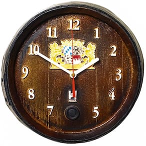 Relógio Horário Barril decorativo números pequeno. Seu miolo é decorado com o Brasão Real de . O Relógio Barril decorativo é confeccionado em fibra de vidro, simula de forma realista a tampa de um barril de madeira de carvalho com um relógio. Uma peça funcional e muito bonita. Ideal para decoração de bares, churrasqueiras, espaço Gourmet, salão de festas e decoração em casa. Tem o diâmetro de 26 cm de diâmetro por 7cm de altura. Essa peça é para ser pendurada na parede. Produzida artesanalmente, uma a uma é pintada nos mínimos detalhes à mão com tintas de alta qualidade e cores vibrantes. Máquina do relógio com a qualidade Quatz. O resultado é um presente de indiscutível qualidade e único ideal para homens. Peça colecionável e decorativa. Decore com estilo e bom gosto ambientes como estúdios, barzinhos, restaurantes, salas e churrasqueiras. É um verdadeiro presente para ser lembrado! Marca: Não Informado