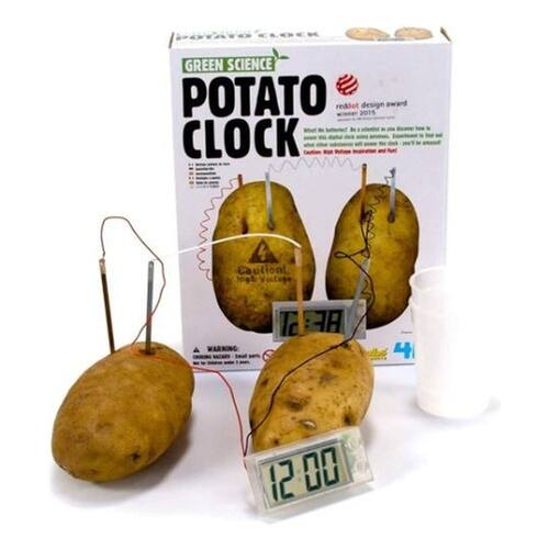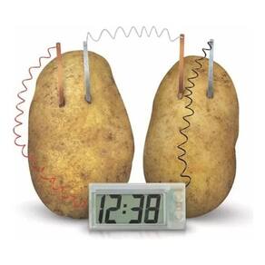 o quê? sem baterias? seja você um cientista e descubra como fazer um relógio digital funcionar utilizando batatas.