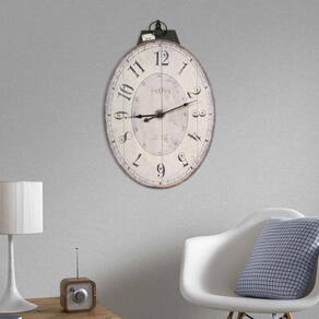 Relógio de parede Benjara BM196306 em formato oval envelhecido com gancho de anel, branco e preto