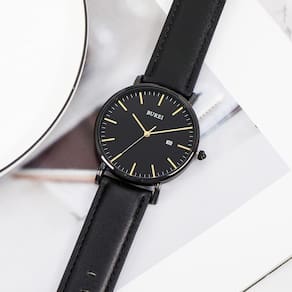 O relógio adota o movimento de quartzo japonês, tempo preciso e a janela do calendário é projetada ao mesmo tempo, que pode ver a data. O couro é respirável e confortável, fácil de ajustar. Design de mostrador ultrafino, simples e elegante.