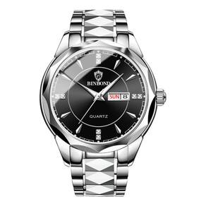 Calendário masculino impermeável em aço tungstênio relógio de quartzo Movimento do relógio - Movimento de quartzo - Diâmetro do movimento de quartzo - Diâmetro do relógio: 42 mm Espessura do relógio: 13 mm Largura da pulseira: 22 mm Comprimento da pulseira: 260 mm Peso do relógio - Peso do relógio: 70 g Material da caixa: material da pulseira de metal - Material da caixa: aço branco - Fivela -Aço branco Sombreamento especular: espelho de vidro aprimorado -Embalagem do produto em cristal: vidro de cristal Caixa de tampa autêntico - Caixa de lista Peso da embalagem: 50g Especificação da embalagem: 14,5 cm x 6,5 cm x 3 cm Tipo de fivela - Quantidade de embalagem: fivela/fivela Nível de impermeabilidade: 30m
