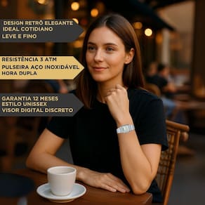 O Casio AQ-230A une o charme do design vintage com a praticidade da tecnologia Anadigi, trazendo o melhor dos dois mundos em um visual clássico e sofisticado. Com pulseira de aço inoxidável e caixa cromada, ele é perfeito para quem busca um acessório elegante para o dia a dia sem abrir mão da funcionalidade. Sua tela digital, localizada na posição das 6 horas, oferece hora dual, cronômetro e alarme diário, ideais para manter sua rotina organizada. Além disso, conta com resistência à água de 3 ATM, oferecendo segurança em situações do cotidiano. Um relógio que combina estilo retrô com praticidade moderna.