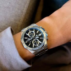 Mecanismo: Quartzo - Material da caixa e do bezel: Aço inoxidável - Material da pulseira: Aço inoxidável - Tipo de fecho: Fecho triplo - Tamanho da caixa C L A : 47 44,3 10,8mm - Peso: 136g - Resistencia à água: 10ATM - Duração de pilha: 2 anos em SR920SW - Vidro: Cristal Mineral - Placa traseira: Trava de rosca - Cronômetro de 1/10 segundo Capacidade de medição: 59'59,9'' Modos de medição: Tempo decorrido, tempo intermediário, tempos do 1º ao 2º lugar - cronometragem regular: Analógico: 3 ponteiros horas, minutos, segundos , 3 mostradores cronômetro 1/10 segundos, cronômetro minutos, cronômetro segundos Exibição de data - Precisão: 20 segundos por mês