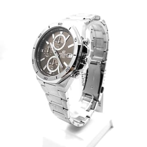 Características Formato do Relógio: Redondo Composição do Vidro: Cristal mineral Material da Caixa: Aço Inox Cor da Caixa: Prata Cor do mostrador: Marrom Material da Pulseira: Aço Inox Cor da Pulseira: Prata Mecanismo: Analógico Multifunção
