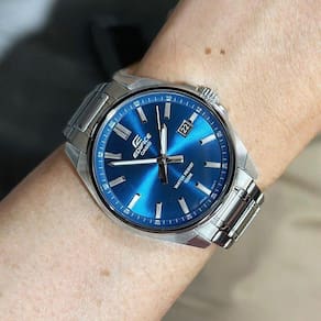 Aprecie um clássico contemporâneo: a sofisticação simples de um design analógico focado nos ponteiros das horas, dos minutos e dos segundos. As marcas de índice sólidas e nítidas contribuem para o visual esportivo, mas clássico. E, como em todos os EDIFICE, este relógio oferece resistência à água de até 100 metros. CARACTERÍSTICAS - Tamanho da caixa C L A : 46.5 42.6 9 mm - Peso: 113 g - Material da caixa e da moldura: Aço inoxidável - Pulseira: Pulseira de aço inoxidável - Fecho de 3 dobras de um toque - Resistente a água: até 100 metros - Fonte de alimentação e autonomia da bateria: 3 anos no SR920SW - Vidro: Mineral - Placa traseira: Trava de rosca - Tamanho de pulseira compatível: 150 mm a 205 mm - Precisão: 20 segundos por mês - Outros recursos: Indicação das horas regular: Analógico: 3 ponteiros hora, minuto, segundo Visor de data