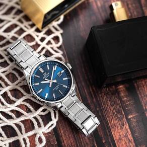 O destaque fica por conta do mostrador azul, que adiciona um toque moderno ao relógio, mantendo ótima legibilidade. O vidro mineral protege o mostrador, enquanto a resistência à água de 10 bar (100 metros) permite uso tranquilo em situações cotidianas e contato moderado com água. O modelo conta ainda com visor de data, agregando funcionalidade ao conjunto.
