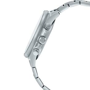 Funções: Visor de data / Cronômetro de 1/10 segundo / Horário regular Analógico: 3 ponteiros (hora, minuto e segundos), 3 mostradores (segundos, minutos e segundos do cronômetro) / Precisão: 20 segundos por mês
