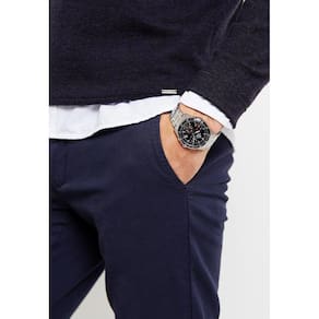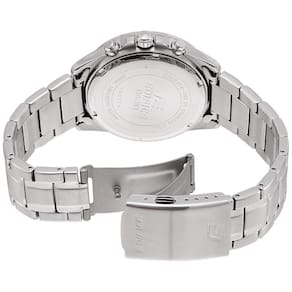 Características Formato do Relógio: Redondo Composição do Vidro: Cristal mineral Material da Caixa: Aço Inox Cor da Caixa: prata Cor do mostrador: Preto Material da Pulseira: Aço Inox Cor da Pulseira: prata Mecanismo: Analógico-Multifunção