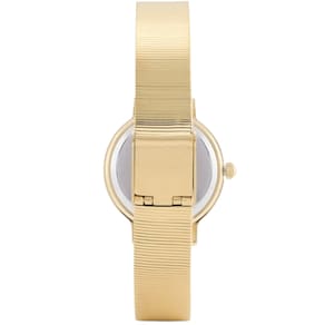 Características Formato do Relógio: Redondo Composição do Vidro: Cristal mineral Material da Caixa: Aço inox Cor da Caixa: Dourado Cor do mostrador: Branco Material da Pulseira: Aço inox Cor da Pulseira: Dourado Mecanismo: Analógico quartz