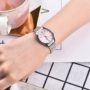 Características Formato do Relógio: Redondo Composição do Vidro: Cristal mineral Material da Caixa: Metal Cor da Caixa: Prata Cor do mostrador: Rosa Material da Pulseira: Aço Inox Cor da Pulseira: Prata Mecanismo: Analógico Quartz