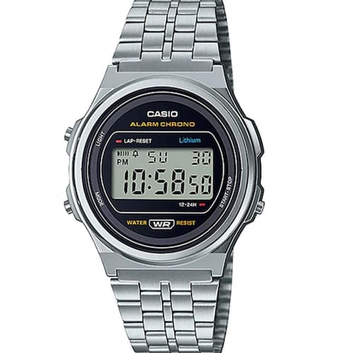Relógio Casio Feminino Vintage Digital Prata A171WE-1ADF Este produto acompanha Embalagem , manual em português e eletrônica. Especificações: Código: A171WE-1ADF-SC ean: 4549526300776 Formato do Relógio: Redondo Gênero: Unissex Estilo: Esporte Fino Tipo de Mecanismo: Digital Caixa do Relógio: Resina Cor Predominante do Relógio: Prateada Cor da Pulseira: Prateada Cor do Mostrador: Digital Regular números escuros e fundo claro Tipo de Pulseira: Aço Inox Modelo Mostrador Relógio: Apenas números Tipo de Vidro: Acrílico Tipo de Coroa e Tampa posterior: Botões Simples, Tampa Parafusada Funções Alarme Diário, Calendário Digital Completo, Cronômetro Progressivo, Formato 12/24hs Resistência a Água: Superficial 12 meses Iluminação Noturna Iluminação de display, Iluminação só no digital Medidas do Relógio 38,836,69,2mm