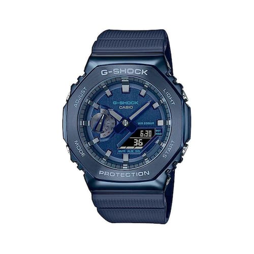Material do corpo/anel: Resina / aço InoxidávelPulseira em resinaNeobriteResistência a choquesVidro mineralEstojo azul metalizadoResistente a água a até 200 mLuz de LED duplaLuz de LED para o visor (Superiluminador, duração da iluminação selecionável (1,5 segundo ou 3 segundos), fosforescência)Luz de fundo de LED para tela digital (Superiluminador, duração da iluminação selecionável (1,5 segundo ou 3 segundos), fosforescência)Hora mundial31 fusos horários (48 cidades + tempo universal coordenado), horário de verão (liga/desliga)Cronômetro de 1/100 de segundoCapacidade de medição:00'00''0059'59''99 (nos primeiros 60 minutos)1:00'0023:59'59'' (após 60 minutos)Unidade de medição:1/100 de segundo (nos primeiros 60 minutos)1 segundo (após 60 minutos)Modos de medição: tempo transcorrido, divisão de tempo, tempos do 1º e 2º lugaresTemporizadoresUnidade de medição: 1 segundoFaixa de contagem: 24 horasConfiguração inicial da faixa de contagem: 1 segundo a 24 horas (incrementos de 1 segundo, incrementos de 1 minuto e 1 hora)5 alarmes diáriosSinalização a cada horaRecurso de mudança do ponteiroCalendário automático completo (até o ano de 2099)Formatos de 12/24 horasAtivação e desativação do Som de operação dos botõesHorário regularAnalógico: 2 ponteiros (hora, minuto (os ponteiros se movem a cada 20 segundos)), 1 mostrador (dia)Digital: Hora, minuto, segundo, pm, mês, dataPrecisão: 15 segundos por mêsDuração aproximada da pilha: 3 anos em SR726W 2Tamanho da caixa : 49,344,411,8mmPeso total : 72g