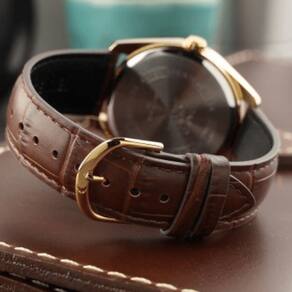Características Formato do Relógio: Redondo Composição do Vidro: Cristal mineral Material da Caixa: Aço Inox Cor da Caixa: Dourado Cor do mostrador: Dourado Material da Pulseira: Couro Cor da Pulseira: Marrom Mecanismo: Analógico Quartz