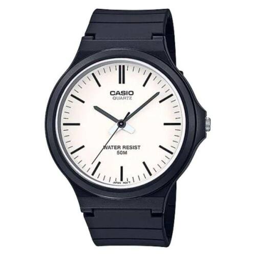 Relógio Casio Analógico Masculino Preto MW-240-7EVDF Recursos:Resistência a água a até 50 metros Especificações:Material do corpo/anel: resinaPulseira em resinaVidro com resinaResistente a água a até 50 mHorário regularAnalógico: 3 ponteiros (hora, minuto, segundo)Precisão: ±20 segundos por mêsDuração aprox. da bateria: 3 anos no SR626SW Medidas:Diâmetro da caixa: 4,8x4,4cmEspessura da caixa: 1,0cmTamanho da pulseira: 21cmLargura da pulseira: 2,1 cmPeso do relógio: 35g Conteúdo da Embalagem:Estojo da MarcaAcessórios (correspondentes a cada modelo)Manual em PortuguêsCertificado de 01 junto ao FabricanteNota Fiscal Eletrônica O Grupo Casio Brasil assegura o perfeito funcionamento do seu relógio pelo período de 01 ano em todo território nacional, caso o seu produto apresente algum defeito, encaminhe diretamente à assistência técnica mais próxima de sua região, sempre acompanhado da documentação recebida. Ean: 4549526213076