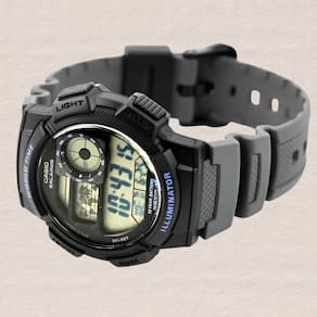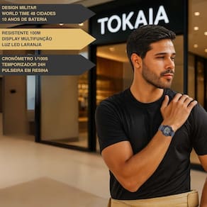 O Casio AE-1000W-8AVDF é o relógio ideal para homens que unem estilo utilitário e funcionalidade global. Seu design robusto com acabamento em verde militar destaca o visual esportivo e moderno, enquanto a caixa em resina leve oferece conforto no uso diário. O destaque vai para o recurso World Time, que exibe até quatro fusos horários simultaneamente, perfeito para quem vive conectado ao mundo. Com resistência à água de até 100 m, cronômetro de 1/100 s, temporizador de 24 h e cinco alarmes diários, este modelo traduz a essência Casio: durabilidade, precisão e praticidade. O LED âmbar de alta visibilidade garante leitura perfeita em qualquer ambiente, tornando o AE-1000W-8AVDF um aliado confiável para o dia a dia e aventuras extremas.