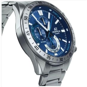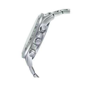 Horário regular: Analógico: 3 ponteiros (hora, minuto, segundo), 3 mostradores (cronômetro 1/10 de segundo, minutos do cronômetro, segundos do cronômetro) Visor de data