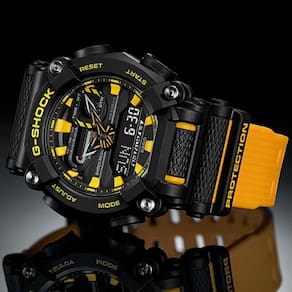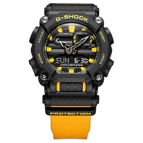 Vidro: Cristal Mineral Material da caixa: Resina Cor da caixa: Preto Material da pulseira: Resina Cor da pulseira: Amarelo Diâmetro da caixa: 49,5 mm Espessura da caixa: 16,9 mm Mecanismo: Anadigi