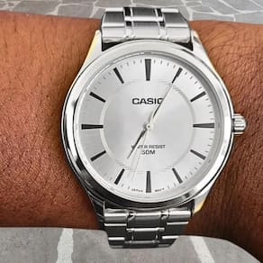 O Casio LTC-100D-7EVDF une elegância minimalista e qualidade duradoura, oferecendo um visual sofisticado que combina com qualquer ocasião. Seu design limpo, com mostrador prata e marcadores discretos, transmite sofisticação atemporal, enquanto a pulseira em aço inoxidável garante resistência e conforto para o uso diário.
