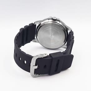 Características Formato do Relógio: Redondo Composição do Vidro: Cristal mineral Material da Caixa: Aço Inox Cor da Caixa: Prata Cor do mostrador: Azul Material da Pulseira: Borracha Cor da Pulseira: Preto Mecanismo: Analógico Multifunção