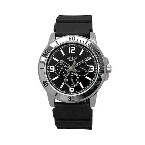 Relógio Casio Standart Prata Preto Masculino MTP-VD300-1BUDF-SCNa Elister, a qualidade é uma prioridade em todos os nossos produtos e serviços. Nós nos esforçamos para oferecer aos nossos clientes uma ampla variedade de acessórios, incluindo relógios e óculos de sol, com as melhores marcas e estilos. Além disso, a nossa equipe é treinada para oferecer um atendimento excepcional, garantindo que cada cliente seja tratado com o respeito e a atenção que merece.ESPECIFICAÇÕES TÉCNICAS- Marca: Casio- Linha: Standard- Referência: MTP-VD300-1BUDF-SC- Gênero: Masculino - Tipo de mostrador: Analógico- Tipo de movimento: Quartz- Função: Calendário Duplo, Formato 12/24hs - Tipo de fecho: Fivela de aço inox- Cor da caixa: Prata - Cor do mostrador: Preto- Cor da pulseira: Preto- Material da caixa: Aço Inox- Material da pulseira: Borracha- Largura da caixa: 4,6 cm- Espessura da caixa: 0,8 cm- Resistência à água: 3 ATM 30 m - Garantia: 12 meses