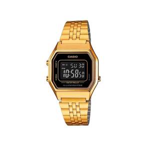 Recursos? Cronômetro de 1/100 segundo ? Alarme ? Iluminador em LED ? Resistente a água ? Pulseira de aço inoxidável ? Design retrô popular EspecificaçõesMaterial do corpo/anel: Resina / DouradoFecho ajustávelPulseira de Aço InoxidávelVidro com resinaResistente a água