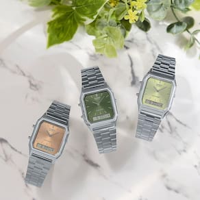 A combinação analógica-digital clássica ornamentada com tonalidades deslumbrantes. Com um mostrador sunray para um toque colorido e elegante num design moderno. Resistência à água para utilização diária e funcionalidades práticas como cronómetro, alarme e muito mais.