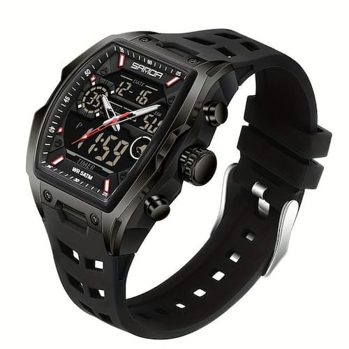 Relógio Casual Ecrã Eletrónico Duplo Com Capacidades De Cronógrafo Sanda Preto