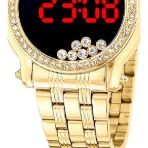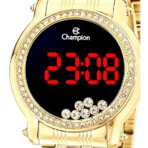 Relógio champion digital dourado com pedraria ch48055h, com garantia de 01 ano, a prova d’água, vidro em cristal mineral.