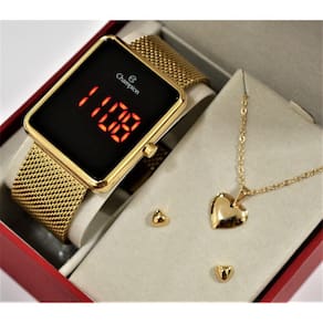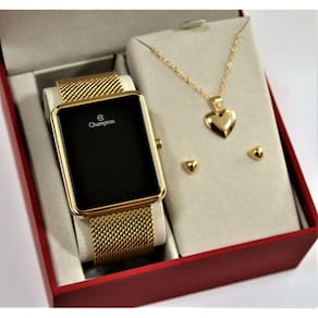 Itens Inclusos: CERTIFICADO DE GARANTIA; MANUAL DE INSTRUÇÃO; CAIXA DO RELÓGIO, RELOGIO, SEMI JOIA( COLAR + BRINCOS) E NOTA FISCAL