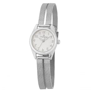 Características Formato do Relógio: Redondo Composição do Vidro: Cristal mineral Material da Caixa: Metal Cor da Caixa: Prata Cor do mostrador: Branco Material da Pulseira: Aço Inox Cor da Pulseira: Prata Mecanismo: Analógico Quartz