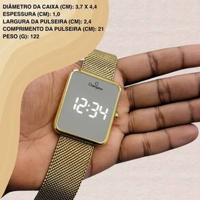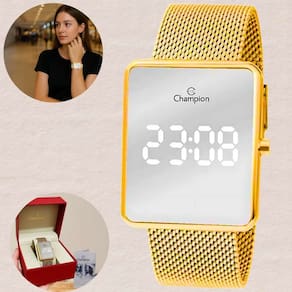 O Champion CH40080B é a definição de elegância moderna. Com caixa quadrada dourada e mostrador espelhado, ele une tecnologia e sofisticação com um visual marcante. Seu visor LED se acende com um toque, revelando as horas com brilho e estilo. A pulseira de aço em malha milanesa proporciona ajuste confortável e toque refinado. Perfeito para o uso diário ou ocasiões especiais, este relógio é ideal para quem busca praticidade sem abrir mão da beleza. Resistente à água até 30 metros, oferece segurança e durabilidade para o dia a dia.