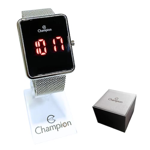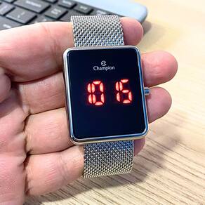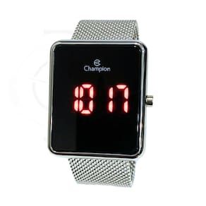 Marca: Champion Modelo: CH40080T Tipo de relógio: Digital Gênero: Feminino Cor da caixa: Prateado Cor da pulseira: Prateado Estilo: Casual Alarme: Não Cronômetro: Não Calendário: Sim Luz: Sim Resistência à água: Sim – 3 ATM = 30 metros Tipo de fecho: Fivela de gancho Material da caixa: Aço Material da pulseira: Mesh de Aço Características do vidro: Cristal Mineral Tamanho da caixa (A x L): 44 x 36 mm Espessura da caixa: 10 mm Comprimento da pulseira: 22 cm Largura da pulseira: 24 mm Tampa do fundo: Rosqueado Peso: 122 Gramas Alimentação: Bateria Garantia do Fabricante: 12 meses Fabricante: Magnum Indústria da Amazônia S/A