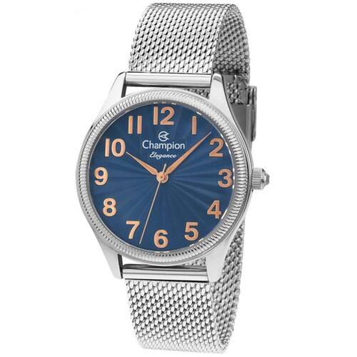 Relógio Champion Feminino Prata Esteira Azul Cn24468f Relógio CHAMPION CN24468F NOVO e ORlGlNAL. Acompanha embalagem oficial, certificado de garantia de 1 ano pelo fabricante, manual de instruções e N0TA FlSCAL. Modelo: CN24468F Gênero: Feminino Garantia: 12 meses