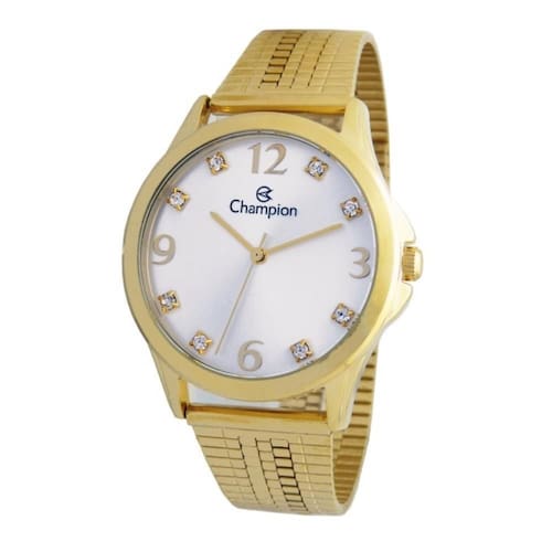 Relógio Champion Feminino Ref: Cn21265h Casual Dourado DESCRIÇÃO DO PRODUTO: Caixa Em Metal Pulseira Em Aço Vidro de Cristal Mineral Fundo Rosqueado Resistente à Água 5 Atm Diâmetro / Largura da Caixa: 38.00 MM Funções: Analógico Mostrador Prateado com números e pedras Alimentação do Maquinário: Bateria de 1 Ano Marca: Não Informado