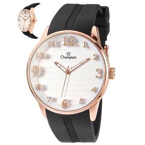Relógio Champion Feminino Trendy - CH30224D - Rosé com Pulseira de Silicone Preta Seja Bem Vindo à Magazine Tic Tac, uma loja com mais de 50 anos de existência Pelas Marcas do Brasil. Sobre o produto: Relógio Champion CH30206S Referência: CH30206S Marca: Champion Mecanismo: Quartzo Cor da Caixa: Rose Material da Caixa: Metal Cor da Pulseira: Marrom Material da Pulseira: Silicone Cor do Mostrador: Branco Tipo do vidro: Cristal mineral Pulseira ajustável: Sim Tipo de fecho: Fivela Largura da Caixa: 4,5 cm Espessura da Caixa: 1,3 cm Tamanho da caixa: Médio Formato da Caixa: Redondo Resistência à Água: 5 ATM Fabricante: Magnum Indústria da Amazônia S.A. do Relógio: 1 ano com o Fabricante, oferecida em toda a rede de Assistências Técnicas e Postos Autorizados da marca. Marca: Não Informado