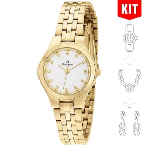 Relógio Champion Kit Feminino Analógico Dourado Cn25458w