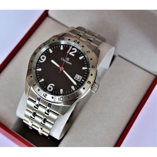 Relogio Champion Masculino Aço Prateado Visor Preto Ca31220d