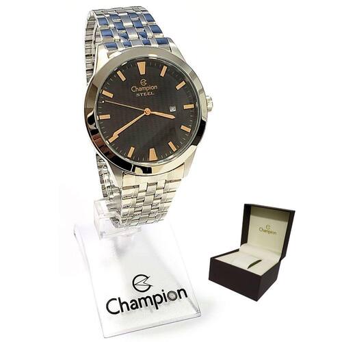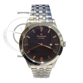 Marca: Champion Modelo: CA21302T Tipo de relógio: Analógico Gênero: Masculino Cor da caixa: Prateado Cor da pulseira: Prateado Estilo: Casual Alarme: Não Cronômetro: Não Calendário: Sim Luz: Não Resistência à água: Sim – 5 ATM = 50 metros Tipo de fecho: Dobrável, com trava lateral Material da Caixa: Aço Inoxidável Material da Pulseira: Aço Inoxidável Características do vidro: Cristal Mineral Tamanho da caixa: 42 mm Espessura da caixa: 9 mm Comprimento da pulseira: 24 cm Largura da pulseira: 18 mm Tampa do fundo: Rosqueado Peso: 98 Gramas Alimentação: Bateria Garantia do Fabricante: 12 meses Fabricante: Magnum Indústria da Amazônia S/A