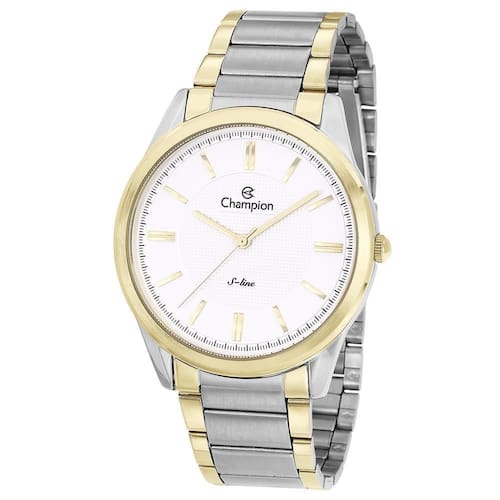 Relógio Champion Masculino Ref: Cn21050b Slim Bicolor DESCRIÇÃO DO PRODUTO: Caixa Em Metal Pulseira Em Aço Vidro de Cristal Mineral Fundo Resistente à Água 3 Atm Diâmetro / Largura da Caixa: 42.00 MM Espessura da Caixa: 7.00 MM Funções: Analógico, Slim Mostrador Prateado Linha: Champion S-line Alimentação do maquinário: Bateria Prateado com Dourado de 1 Ano