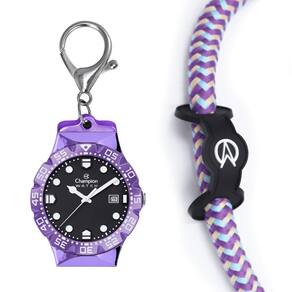 - Gancho para pendrar o relógio onde quiser (com base lilás metálico)